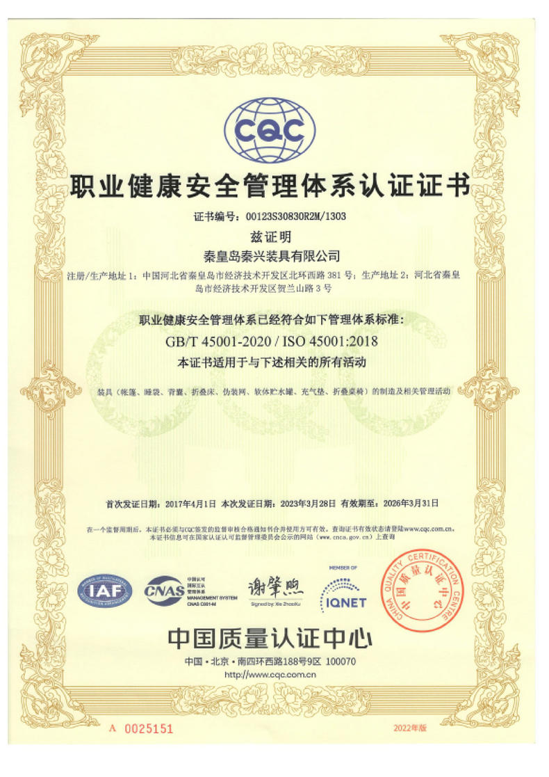秦皇島秦興裝具有限公司有限公司源于我國第3524工廠,創建于2005年,占地面積30畝,是一家致力于研究,發展,制造和銷售為一體的綜合性裝具及紡織服裝加工生產企業,我們的主要產品有單、棉帳篷,民用帳篷,旅游帳篷集各種機工產品等。
